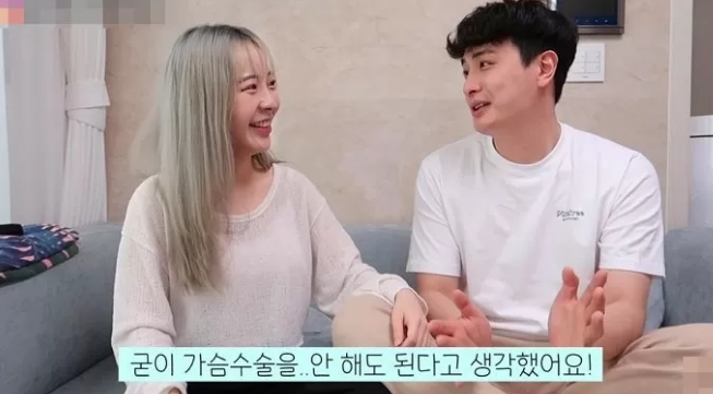 영상에서 그는 "제가 예전부터 가슴에 대한 콤플렉스가 있었다"며 "수술을 3년 정도 고민하다 큰 마음 먹고 수술을 결정했다"며 "뽕(보정 속옷)을 하나도 안 찼는데도 이렇게 튀어나왔다는 게 너무 신기하다"고 했다.