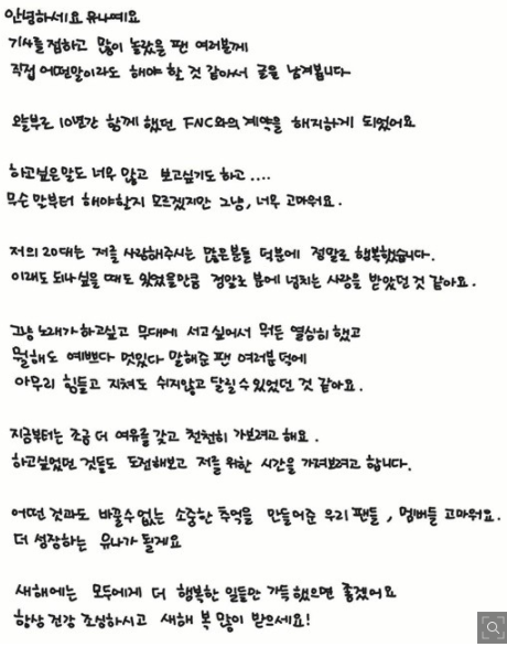 공개하며 계약종료 심경을 전했다.