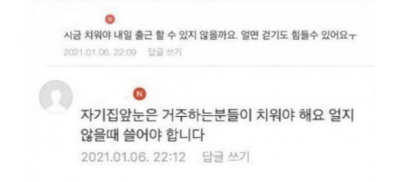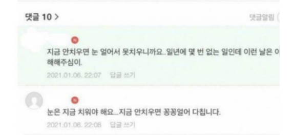 눈이 얼어붙어 제설을 못해 출근이나 외출에