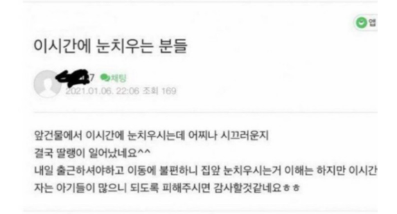 아기가 잠을 깼다며 낮에 치우라는 듯